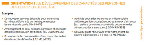 Le Plan d’action interministériel 2017-2021 vise notamment à offrir de nouveaux services éducatifs pour les enfants de milieux défavorisés qui ne fréquentent pas les services de garde et à assurer une meilleure détection précoce des retards de développement chez les enfants âgés entre 18 mois et 5 ans dans le réseau de la santé et des services sociaux. Ce plan découle de la politique gouvernementale de prévention en santé qui avait été dévoilée à l'automne 2016. En déployant cette politique, le gouvernement s'engageait, entre autres, à augmenter à 80 % la proportion d’enfants qui commencent leur scolarité sans présenter de facteur de vulnérabilité pour leur développement. Rappelons qu'au Québec, un tout-petit sur 4 est vulnérable à la maternelle dans au moins un domaine de son développement.