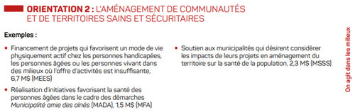 Au cours des 4 prochaines années, 80 millions de dollars seront consacrés à des initiatives concrètes pour réduire les risques pour la santé, maintenir la population physiquement active et mettre en place des conditions qui favorisent le plein épanouissement des personnes et des communautés.