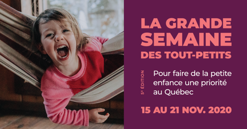 Un vaste mouvement se met en branle à l'occasion de la cinquième édition de la Grande semaine des tout-petits qui aura lieu du 15 au 21 novembre. Organisé par le Collectif petite enfance et né des efforts concertés de plusieurs acteurs mobilisés, l’événement a pour objectif de faire de la petite enfance une véritable priorité de société au Québec.