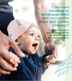 À l’automne, le rapport thématique Comment favoriser le développement des tout-petits avant leur entrée à l’école ? a été publié. En plus de mettre en valeur l’importance de la qualité, de la stabilité et de la continuité des milieux de vie dans lesquels grandissent les tout-petits, ce rapport explore les leviers dont disposent les gouvernements, les municipalités et les communautés afin d’influencer positivement le développement des tout-petits avant leur entrée à l’école. Un comité composé de 17 membres issus d’organisations terrain, de représentants du gouvernement et de chercheurs a participé à la préparation de ce rapport. Cette publication est particulièrement intéressante pour bâtir un argumentaire en faveur de la collaboration entre les milieux, ou sur l’importance de la qualité et de la stabilité des milieux de vie dans lesquels grandit un tout-petit, ainsi que de la continuité entre ces milieux.