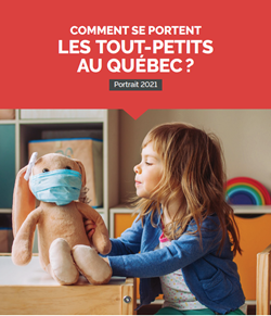 Finalement, à l’occasion de la Grande semaine des tout-petits, qui s’est tenue du 15 au 21 novembre, nous avons dévoilé notre nouveau Portrait intitulé Comment se portent les tout-petits au Québec ? L’édition 2021 propose de faire un arrêt sur image, le temps de décrire à l’aide des données les plus à jour dans quelles conditions les tout-petits viennent au monde, quel est leur état de santé physique, leur état de santé mentale et leur développement. Il présente des leviers collectifs qui ont été démontrés efficaces ou se sont avérés prometteurs par la pratique sur le terrain ou la recherche scientifique et comprend également une recension des plus récentes études sur les effets de la pandémie sur les tout-petits et leur famille.