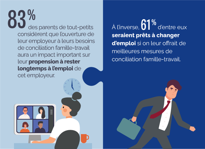 C’est donc dire que l'accessibilité aux mesures de conciliation famille-travail est cruciale pour la rétention des travailleurs parents et constitue un critère prioritaire dans le choix d'un emploi.