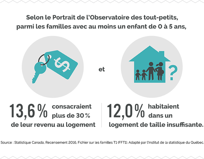 Lorsqu’une famille consacre une proportion importante de son revenu au logement, cela a pour effet de réduire sa capacité à répondre à d’autres besoins essentiels tels que se nourrir. D’ailleurs, selon certaines études, le coût élevé du logement accentue non seulement le risque d’insécurité alimentaire, mais aussi de stress dans la famille. Cela peut ensuite influencer négativement le développement des tout-petits et augmenter la fréquence des troubles intellectuels, des problèmes de langage ou des difficultés sociales ou affectives.