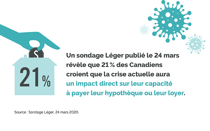 « Évidemment, les gouvernements, notre rôle premier, dans la crise actuelle, c’est de s’assurer que tout le monde a assez d’argent pour manger, pour se loger », soulignait le premier ministre François Legault dans son point de presse du 25 mars dernier. Les différents paliers de gouvernement ont ainsi mis en place des mesures pour venir en aide aux familles qui ont connu une perte de revenu. De plus, le premier ministre québécois a demandé aux propriétaires d’être compréhensifs à l'égard des retards de paiement de loyers.