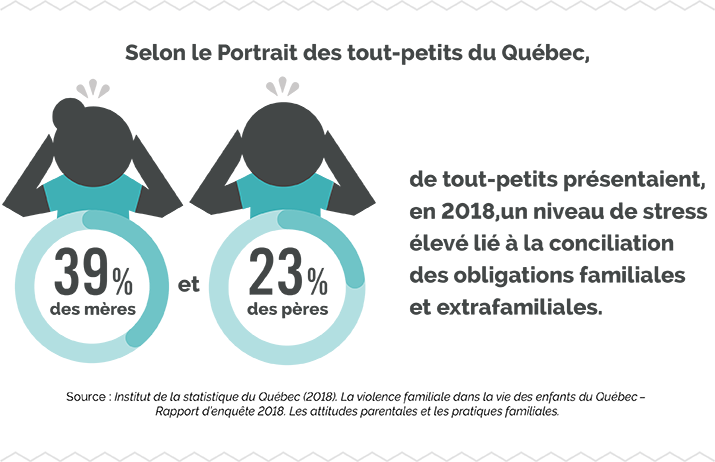 La pandémie de COVID-19 aura malheureusement pour effet d’amplifier le phénomène, notamment en raison de la fermeture des services de garde éducatifs à l’enfance. Certains parents devront aussi apprendre à conjuguer télétravail et présence de jeunes enfants.