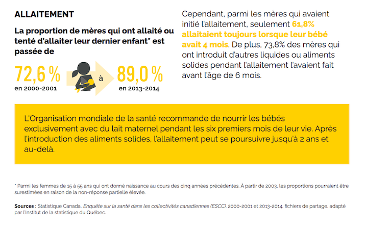 Les éléments ayant affecté l’allaitement des familles durant la crise sont nombreux. Parmi ceux-ci, on retrouve :