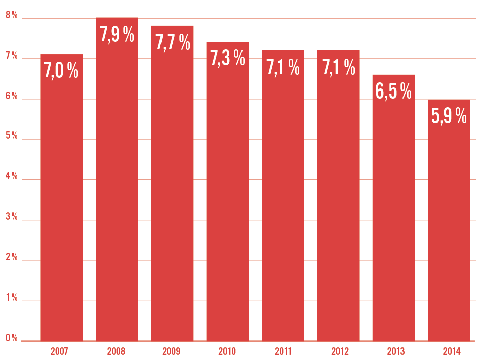 Cette proportion a connu une baisse depuis 2008, alors que 6 941 nouveaux-nés étaient concernés par cette situation.