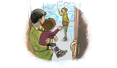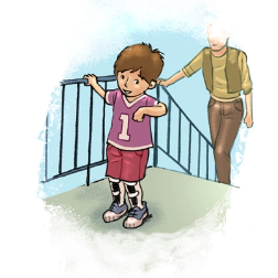 Noah a une paralysie qui touche son côté gauche. Il se déplace avec difficulté.