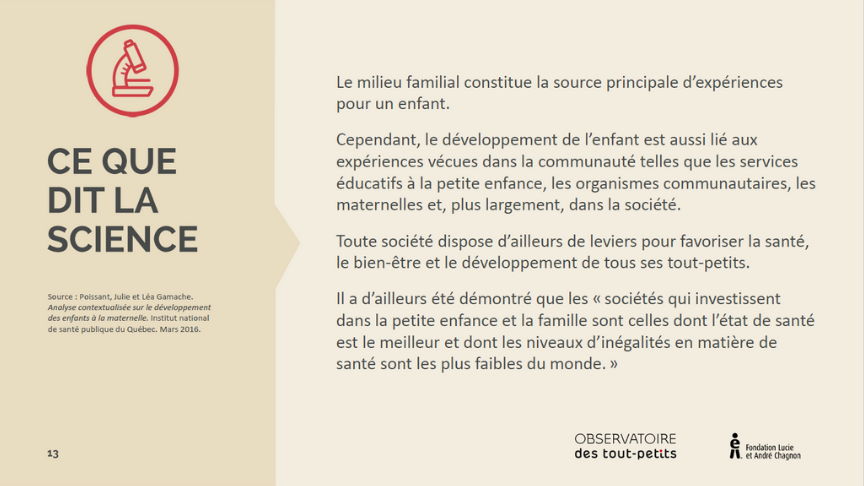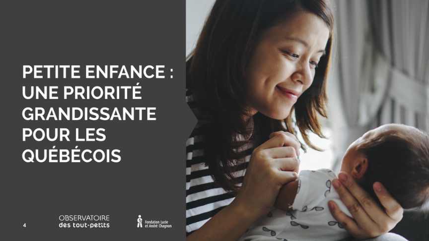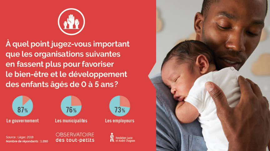 Les Québécois sont conscients que les parents ne sont pas les seuls à jouer un rôle crucial auprès des tout-petits et que la mobilisation de tous les acteurs de la société est essentielle pour assurer le bon développement des enfants, et ce, dès la grossesse.