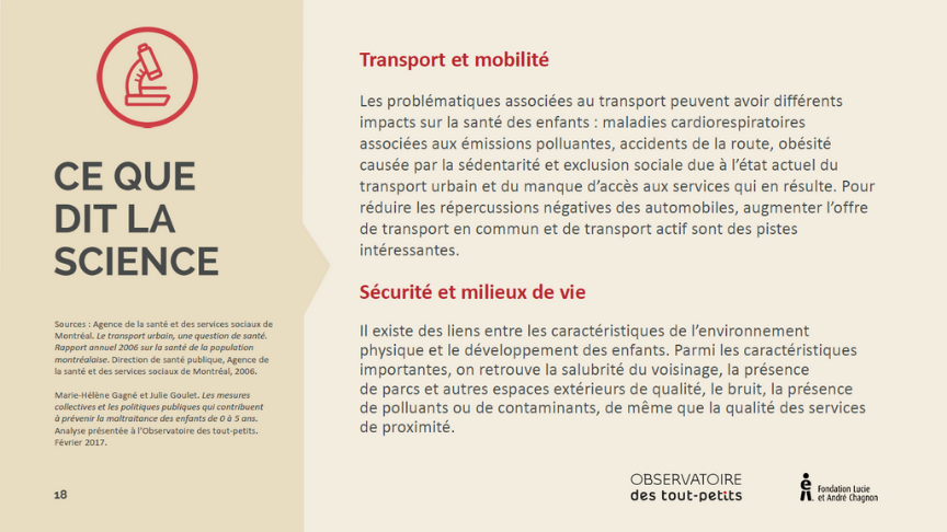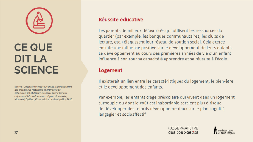 « C’est intéressant de voir que les citoyens souhaitent que les municipalités en fassent plus dans des secteurs aussi variés que la réussite éducative ou les logements sociaux. Les municipalités ont en effet les compétences et les pouvoirs pour influencer directement la qualité de vie des familles et, du même coup, permettre aux tout-petits de développer leur plein potentiel. À preuve, près de 90 % des citoyens du Québec vivent maintenant dans une municipalité ou dans une MRC ayant une politique familiale municipale ou engagée dans le processus. »Isabelle Lizée